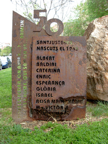 : Sota un gros 50 i el lema "Santjustencs nascuts
