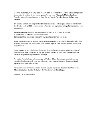 El darrer diumenge 24 de juny, festa de Sant Joan, La Federació de Cors de Clavé va organitzar