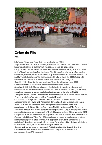 L'Orfeó de Flix es crea l'any 1952 i està adherit a La FCEC.