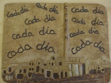 Plafó ceràmic de fang refractari cuit a 1250º, decorat amb argiles.