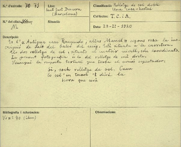 duia la llegenda : "Que miras consol si / soch rellotge