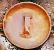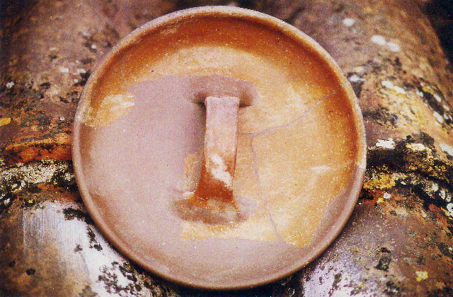 Descripció : Tapadora de nansa d'arc, en ceràmica vidriada, possiblement serviria per a tapar una olla.