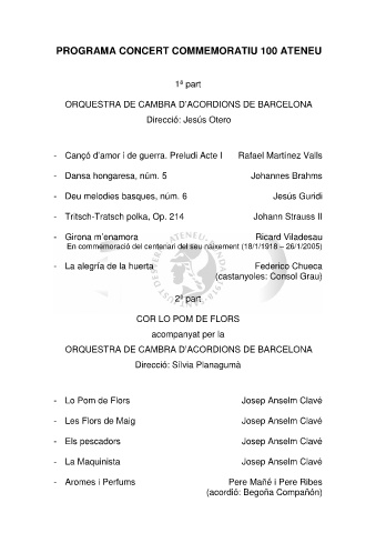 PROGRAMA CONCERT COMMEMORATIU 100 ATENEU